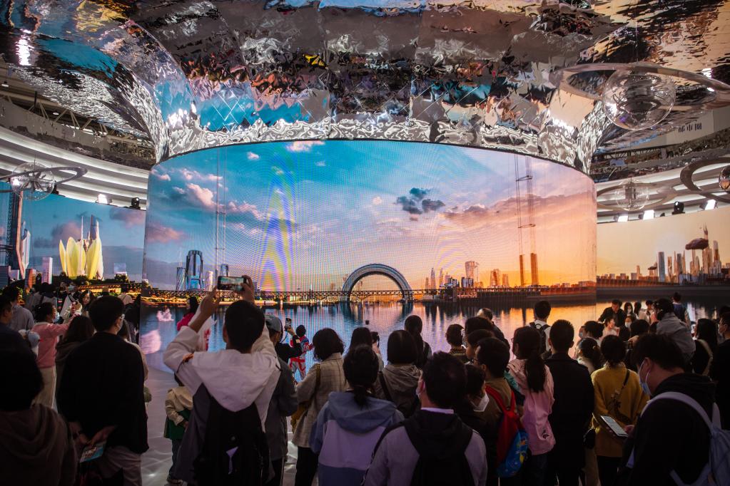 “炫酷又震撼,尤其是光影技術(shù)下的大美中國館以及超科幻的武漢館。逛一天展就走遍了整個(gè)中國,身臨其境地感受到各地大好山河與風(fēng)土人情?!眮?lái)自湖南的游客白夢(mèng)圓說(shuō)。