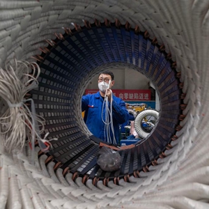 工人在哈爾濱電氣集團佳木斯電機股份有限公司生產(chǎn)車(chē)間內作業(yè)(4月4日攝)。新華社記者 謝劍飛 攝