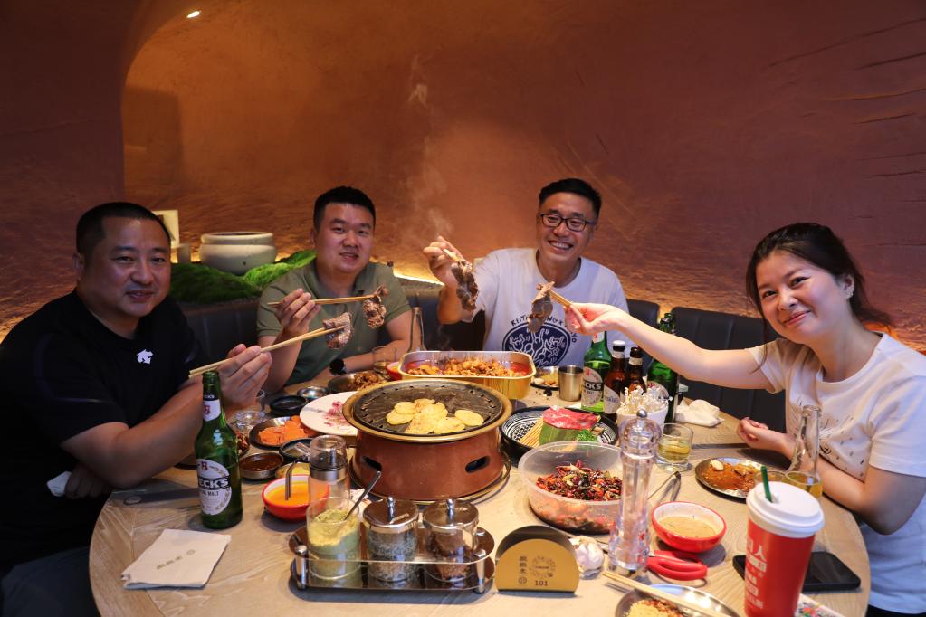 在齊齊哈爾市一家烤肉店,市民正在用餐。新華社記者唐鐵富 攝