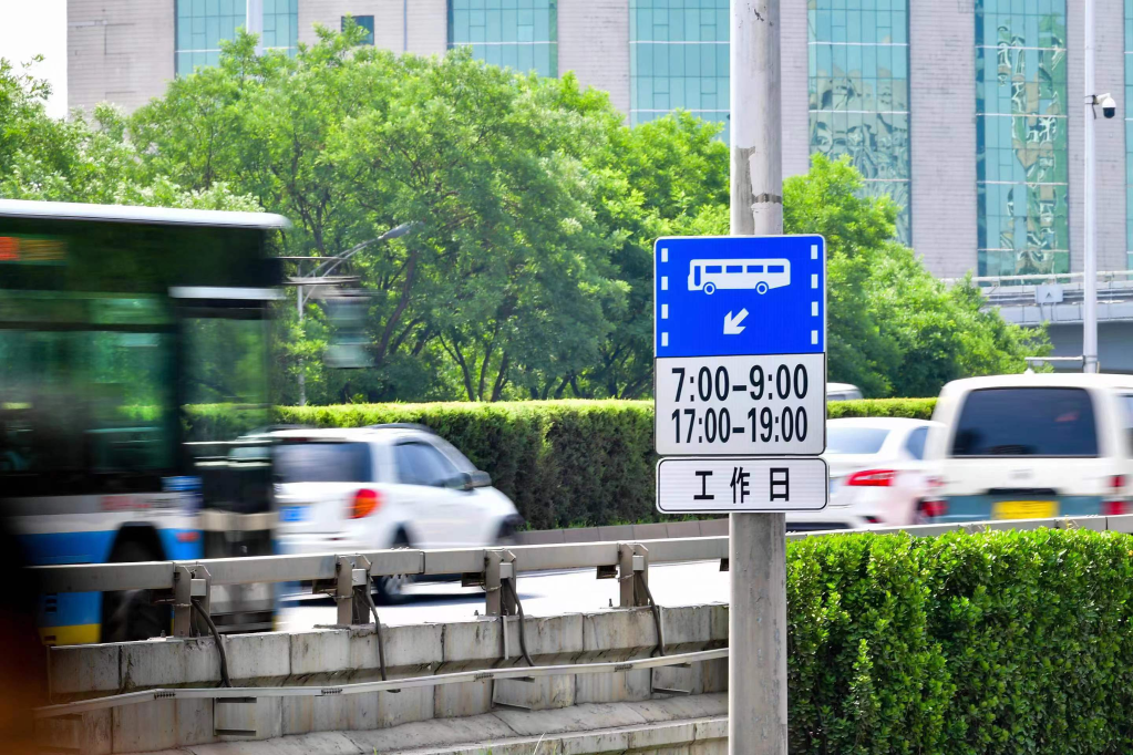 新的公交專(zhuān)用道使用指示牌在京設置完畢。(北京市公安局交通管理局供圖)