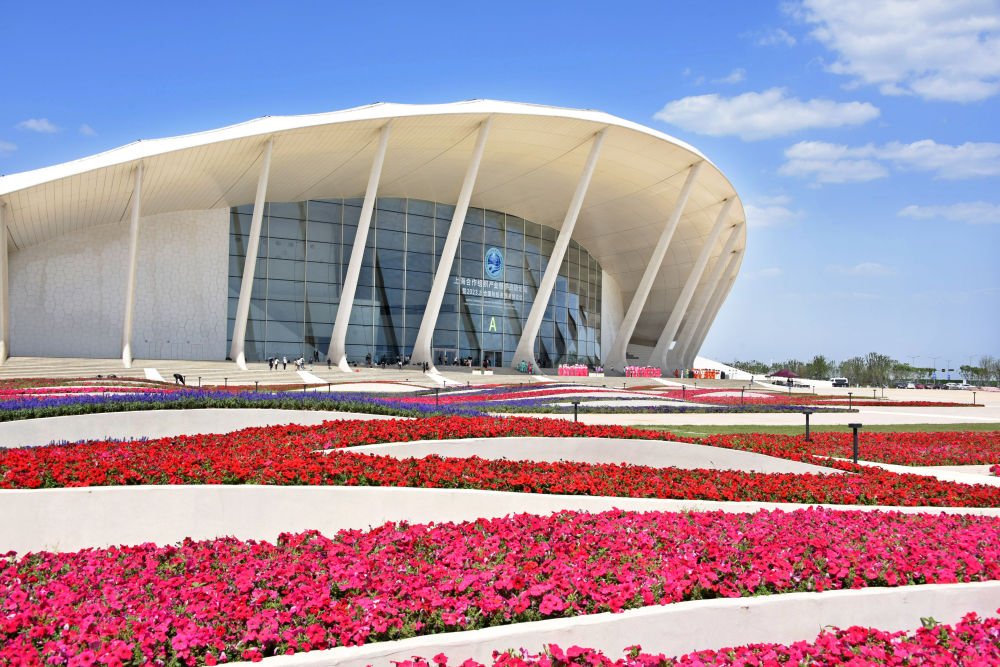 位于中國—上海合作組織地方經(jīng)貿合作示范區的青島·上合之珠國際博覽中心一景(5月22日攝)。新華社記者 李紫恒 攝