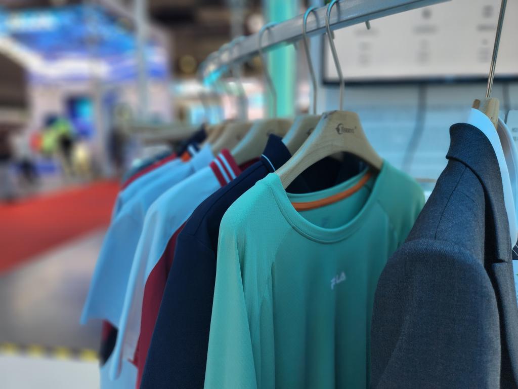 碳博會(huì )上凱賽生物展示的生物基聚酰胺纖維產(chǎn)品制成的服飾。新華社記者王默玲 攝