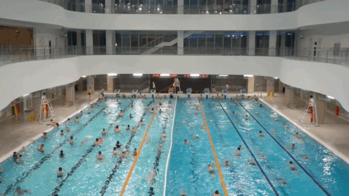在工作日的晚上,記者在現場(chǎng)看到泳池內已是“人從眾”