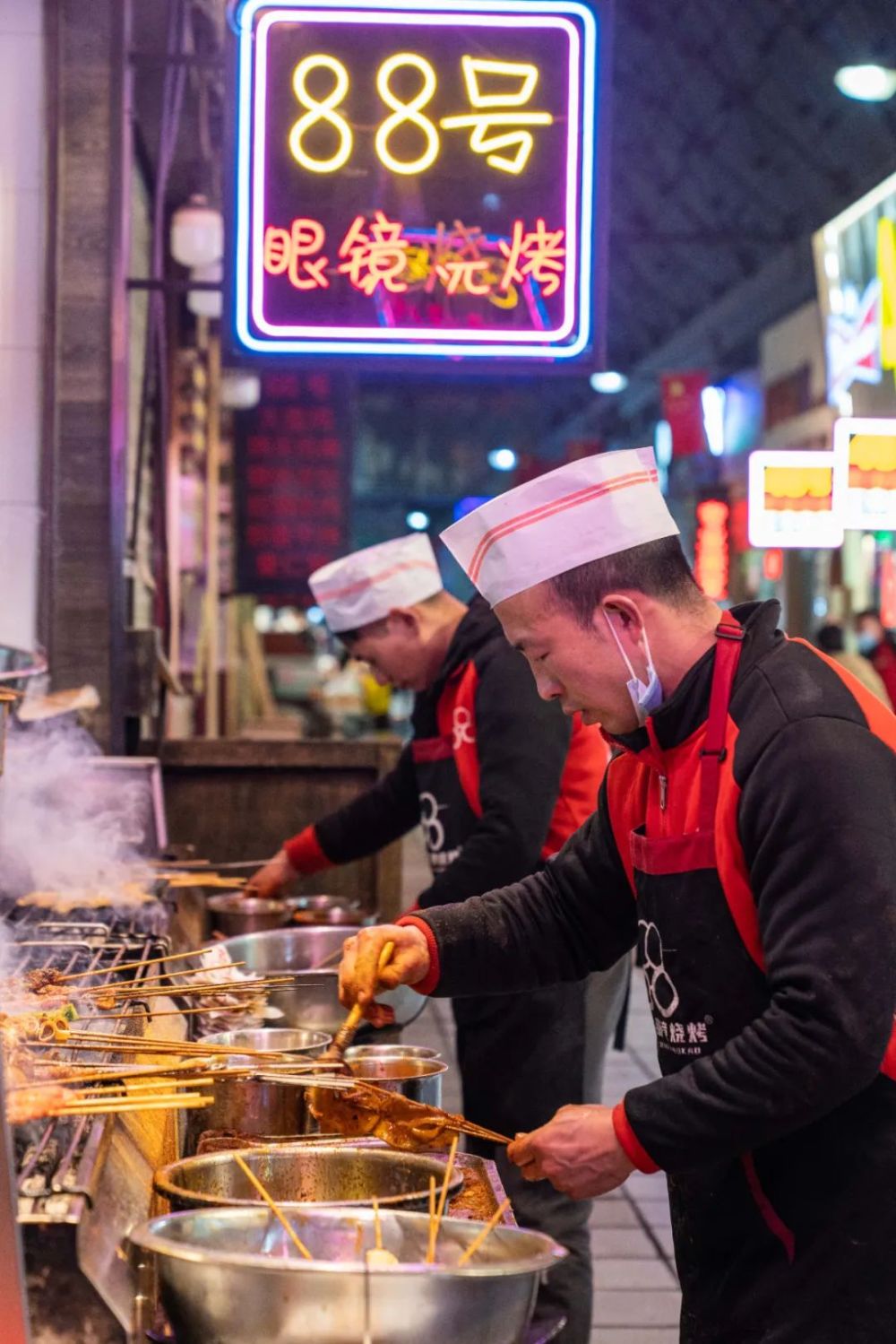 燒烤師傅在烤串 周荻瀟 攝