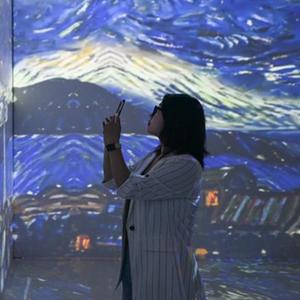觀(guān)眾在天津數字藝術(shù)博物館“梵高的世界”全景數字藝術(shù)互動(dòng)大展預展上參觀(guān)。新華社記者 孫凡越 攝