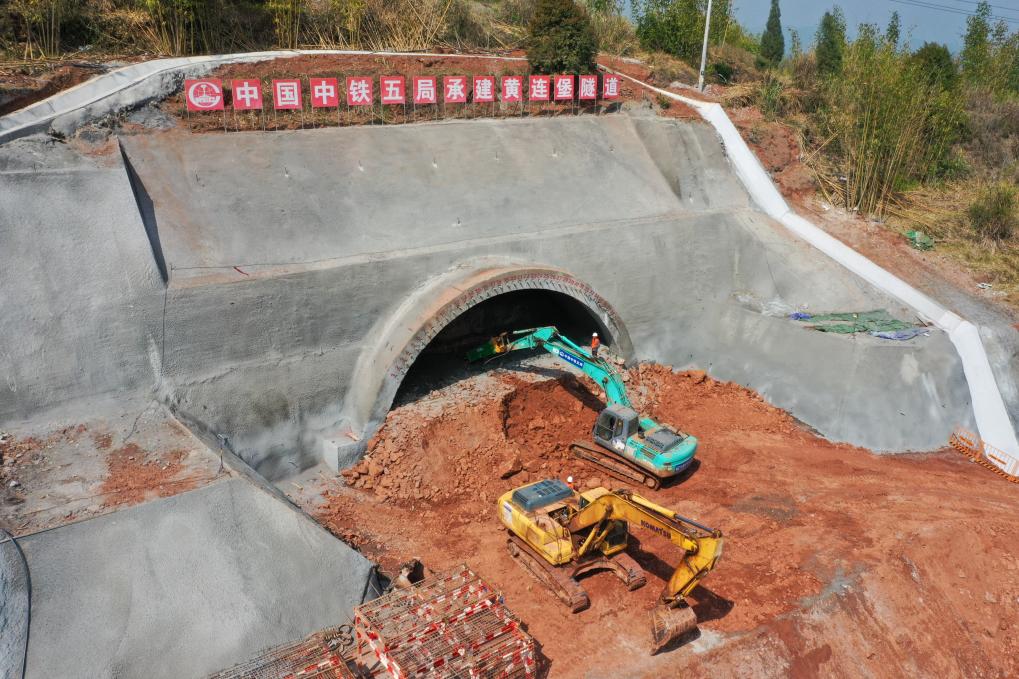 3月30日拍攝的成渝中線(xiàn)高鐵首座隧道——黃連堡隧道施工現場(chǎng)。新華社記者唐奕 攝
