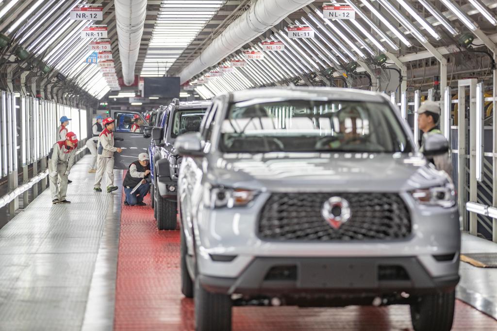 在長(cháng)城汽車(chē)永川生產(chǎn)基地,總裝車(chē)間檢測線(xiàn)的員工對車(chē)輛進(jìn)行下線(xiàn)前的檢測。新華社記者黃偉 攝