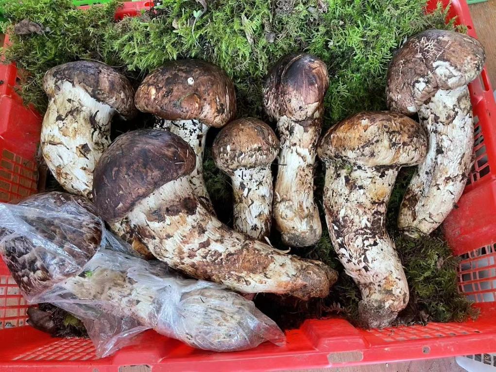 村民們剛采摘的新鮮松茸。(李文富 攝)
