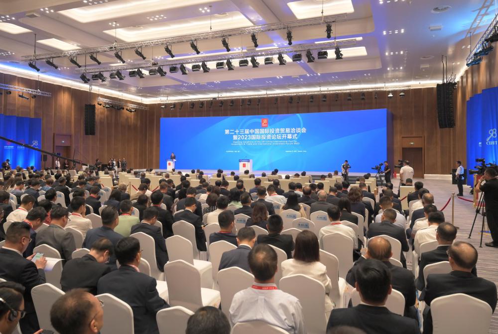 這是9月8日拍攝的第二十三屆中國國際投資貿易洽談會(huì )暨2023國際投資論壇開(kāi)幕式現場(chǎng)。新華社記者 林善傳 攝