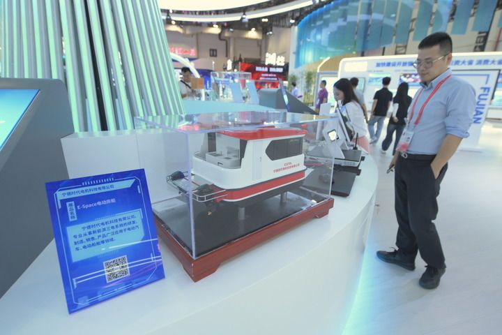 9月8日,參觀(guān)者在第二十三屆中國國際投資貿易洽談會(huì )展覽上觀(guān)看寧德時(shí)代電機科技有限公司的電動(dòng)房船模型。新華社記者 林善傳 攝