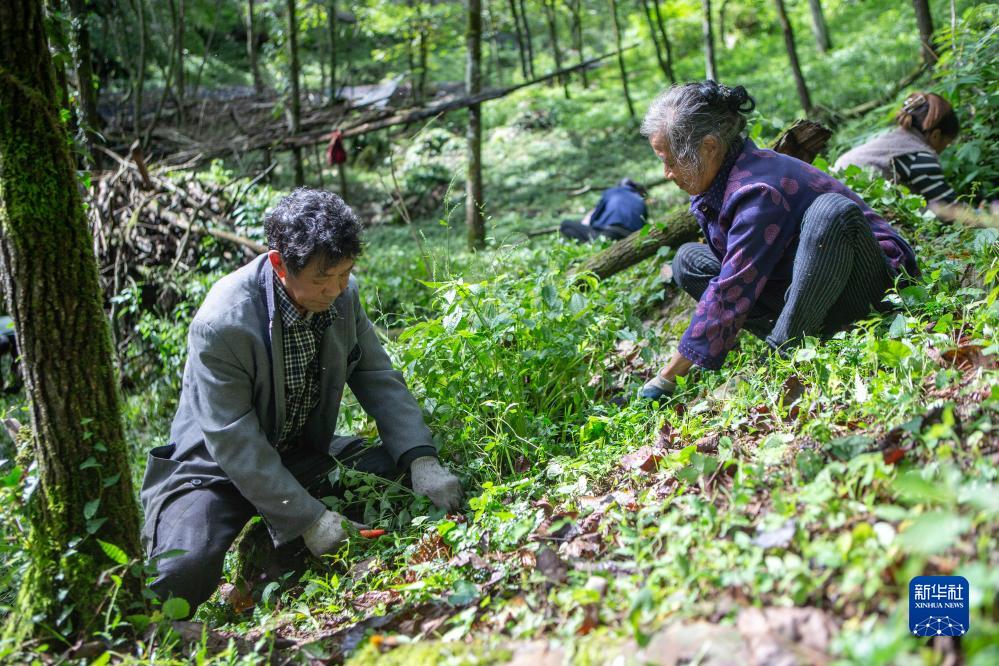 產(chǎn)業(yè)發(fā)展帶動(dòng)就業(yè)增收。林地里,10余名村民正在除雜草。56歲的余達容說(shuō),自己因照顧家庭無(wú)法外出務(wù)工,中藥材種植基地建起來(lái)后,在家門(mén)口一個(gè)月就能有2000多元收入。