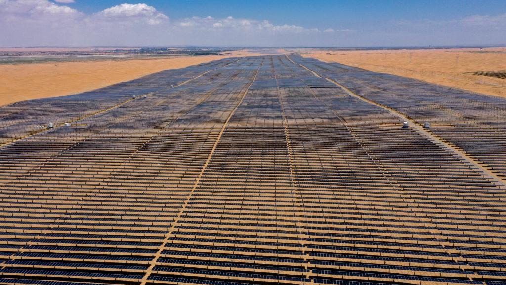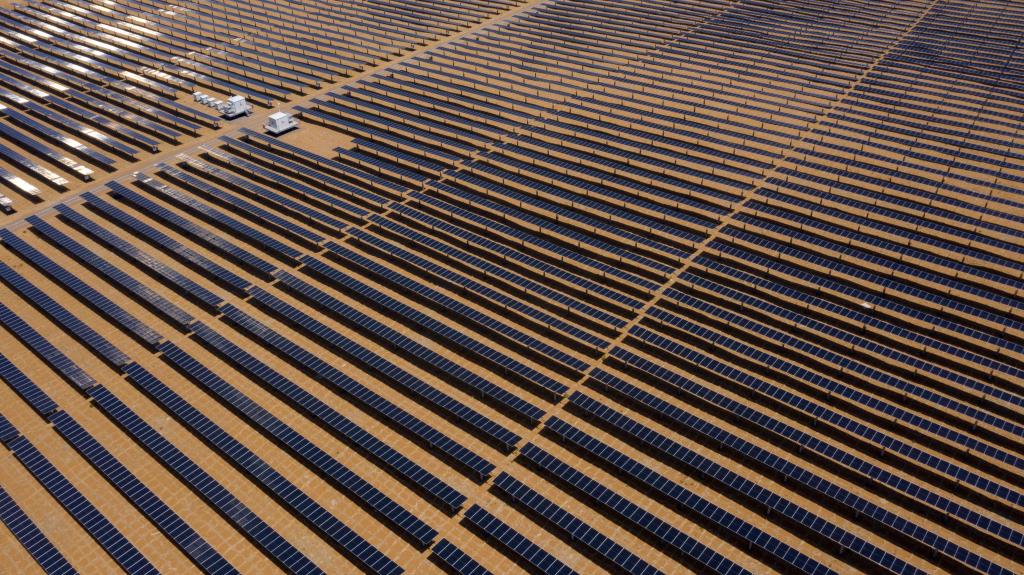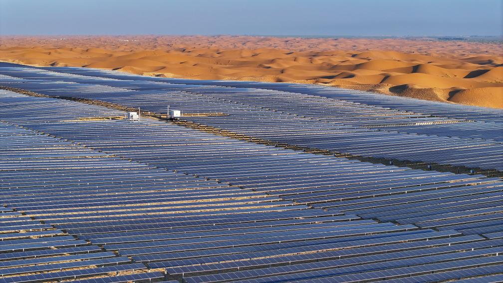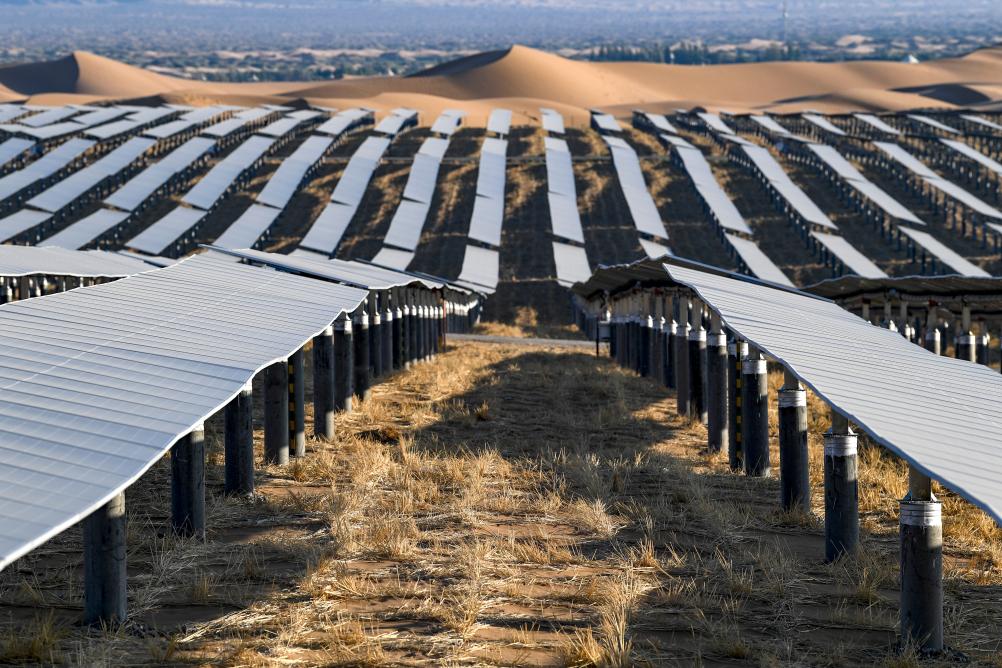 ↑ 位于寧夏中衛市的騰格里沙漠新能源基地。