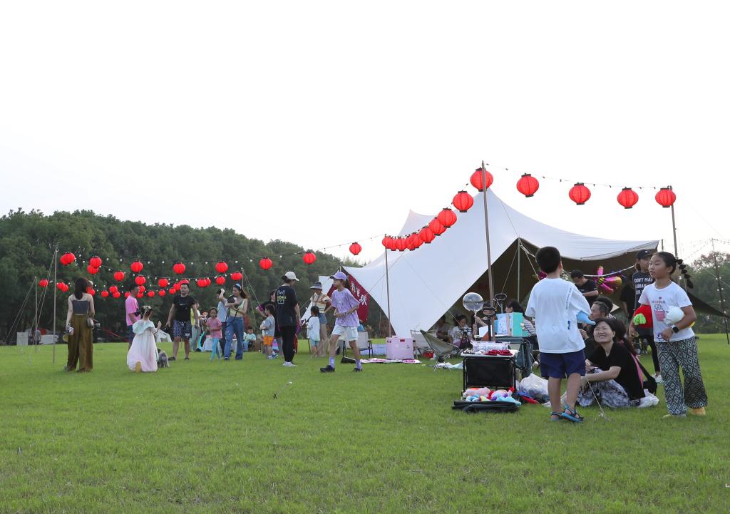 在上海松江區一處營(yíng)地,市民游客在逛營(yíng)地帳篷集市(9月29日攝)。新華社記者 方喆 攝