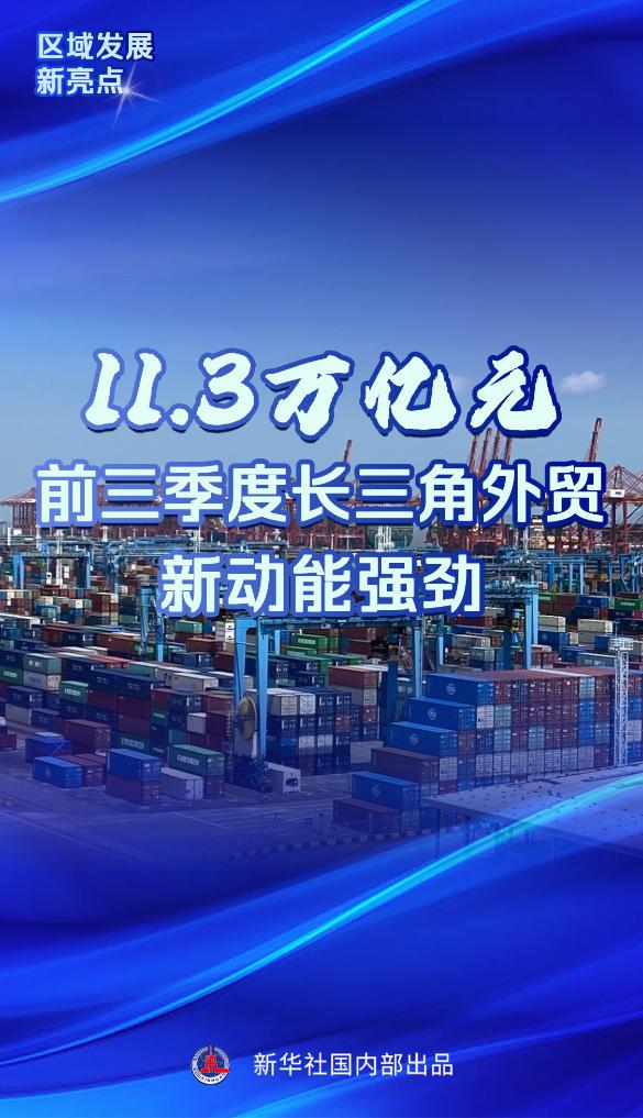 統計數據顯示,前三季度,長(cháng)三角3省1市進(jìn)出口總額達11.3萬(wàn)億元。其中,上海、浙江、安徽進(jìn)出口分別增長(cháng)2.7%、5.0%、6.1%,高于全國平均水平,江蘇外貿規模連續5個(gè)月環(huán)比增長(cháng),呈現持續回升態(tài)勢。