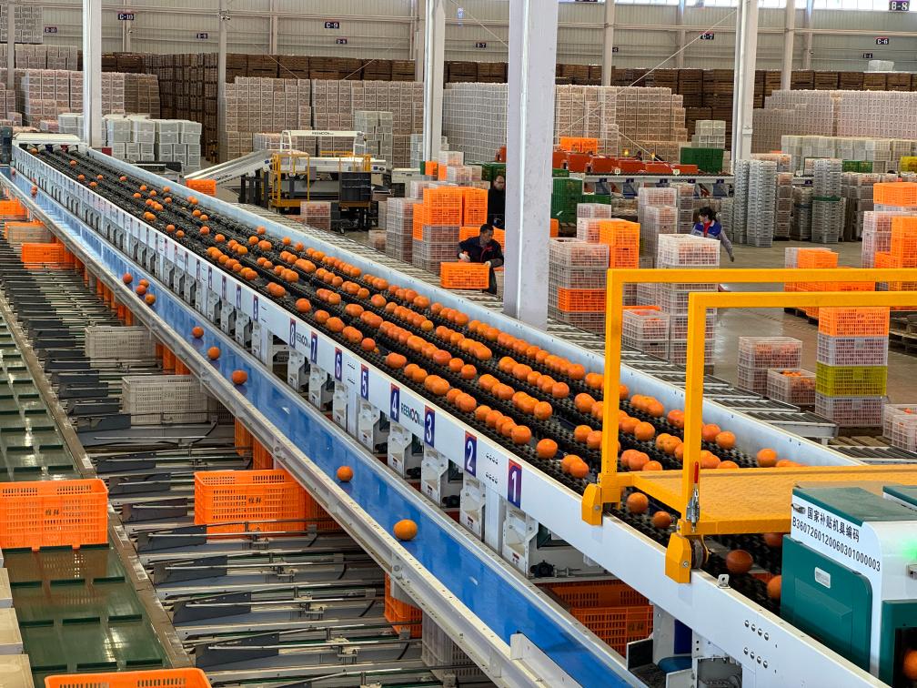“這相當于給臍橙做‘全身體檢’,所有結果會(huì )顯示在電腦上,以便分揀人員更好掌握每一批次臍橙的質(zhì)量信息?!焙f(shuō),經(jīng)過(guò)設備處理后的橙子,會(huì )從個(gè)頭大小、重量等維度分門(mén)別類(lèi)打包封裝,不同規格的臍橙也給消費者提供了更多選擇。