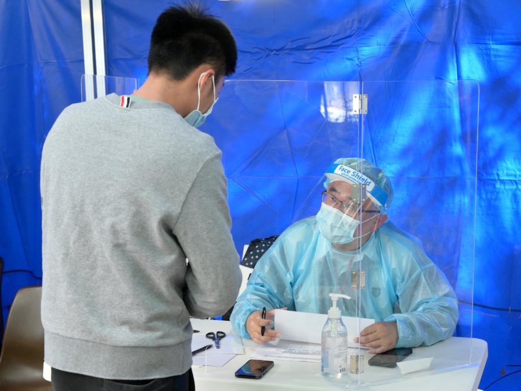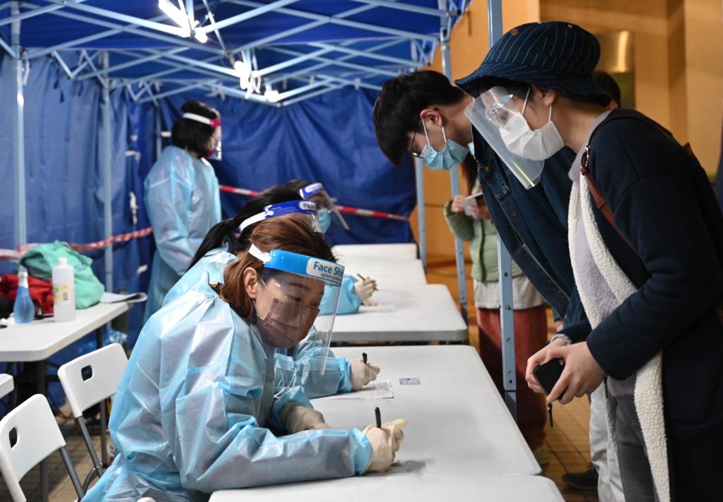 正在進(jìn)行圍封或強制檢測的葵涌邨居民在進(jìn)行檢測(資料照片)。新華社發(fā)