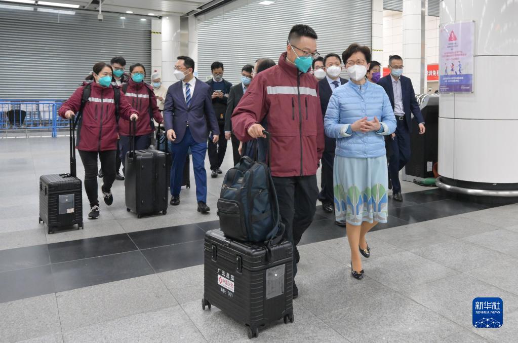 2月17日,香港特區行政長(cháng)官林鄭月娥在深圳灣口岸迎接專(zhuān)家組一行。新華社發(fā)