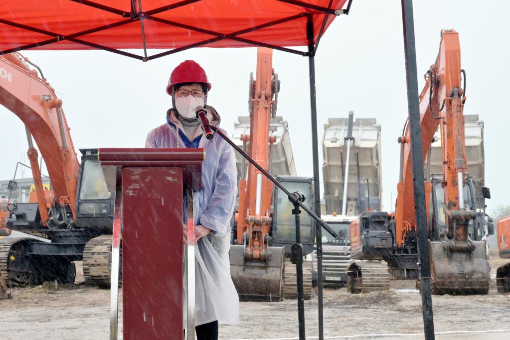 林鄭月娥一行首先參觀(guān)了施工現場(chǎng)智慧工地指揮中心,隨后在啟動(dòng)儀式上,她代表全港市民向中央領(lǐng)導對香港的高度重視、深切關(guān)懷和全力支援表示衷心感謝。林鄭月娥表示,中國建筑國際自香港抗疫以來(lái),一直是香港最可信賴(lài)的伙伴,相繼在極短時(shí)間內建造了鯉魚(yú)門(mén)隔離檢疫中心,又高水平建設了香港臨時(shí)醫院。特區政府對于中國建筑國際在援建香港抗疫期間表現出的高度專(zhuān)業(yè)精神和責任感表示衷心感謝。