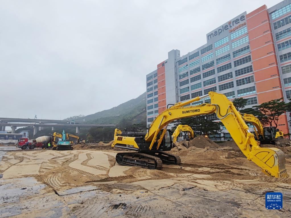 2月22日拍攝的香港元朗潭尾臨時(shí)性社區隔離治療設施建設現場(chǎng)。新華社發(fā)