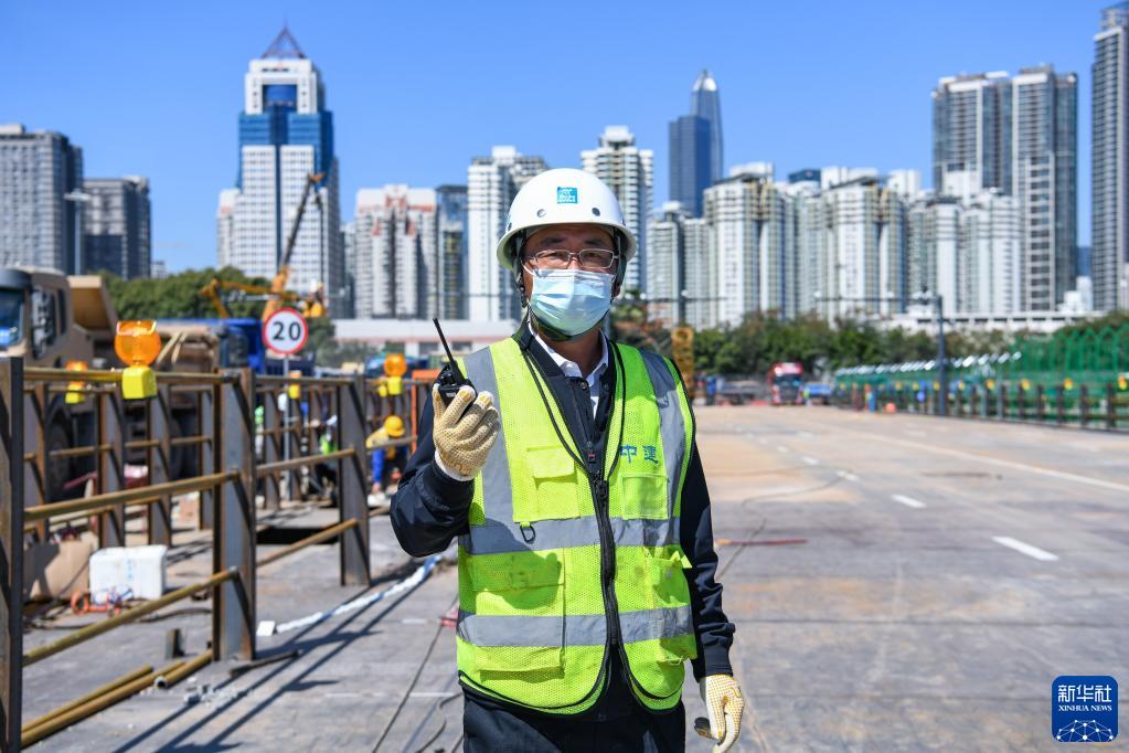 3月8日,黃克起在鋼棧橋施工現場(chǎng)。新華社記者 梁旭 攝