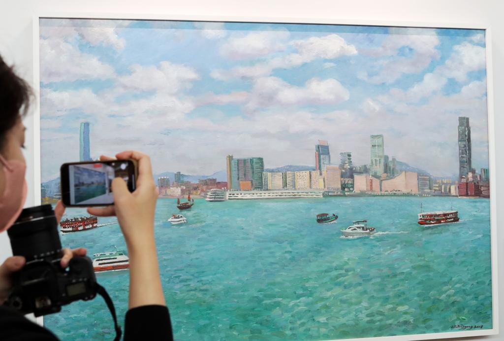 此外,表現粵港澳大灣區建設成就的港珠澳大橋、獅子山下傳統與現代結合的建筑、香港城市的美麗風(fēng)景、朵朵綻放的紫荊花……包含這些與港人生活密切相關(guān)元素的畫(huà)作也是本次展覽的一大亮點(diǎn)。