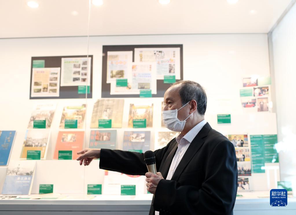 鄭寶鴻為香港書(shū)展做展覽介紹(7月19日攝)。新華社記者 李鋼 攝