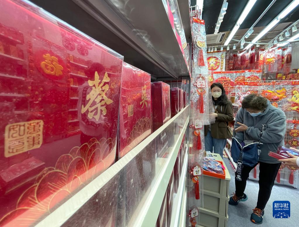 這是香港銅鑼灣羅素街一家銷(xiāo)售利是封的店鋪(1月11日攝)。新華社記者 李鋼 攝