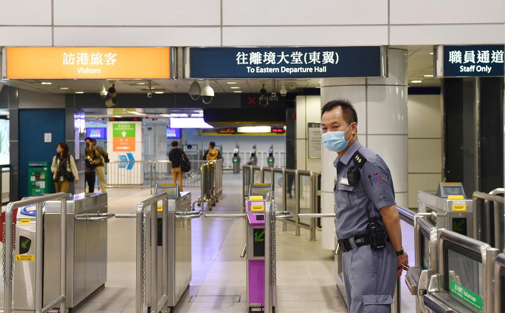 2月3日,一名工作人員在港鐵東鐵線(xiàn)羅湖站內值勤。香港與內地2月6日起全面通關(guān)。目前,港鐵東鐵線(xiàn)羅湖站已準備就緒重新投入服務(wù)。新華社記者 陳鐸 攝
