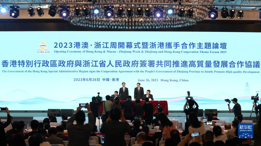新華社香港6月26日電(梁文佳 章雅昭)2023港澳·浙江周開(kāi)幕式暨浙港攜手合作主題論壇26日在香港舉行。浙港雙方現場(chǎng)簽署共同推進(jìn)高質(zhì)量發(fā)展合作協(xié)議以及3項合作備忘錄,同時(shí)簽約多個(gè)合作項目,涉及高端制造、信息技術(shù)、教育科技等領(lǐng)域。