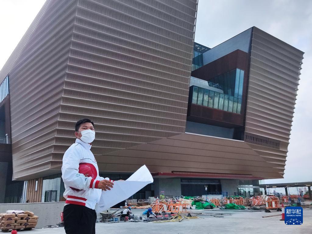 趙偉站在尚未完全建成的香港故宮文化博物館前(2021年6月30日攝)。新華社發(fā)