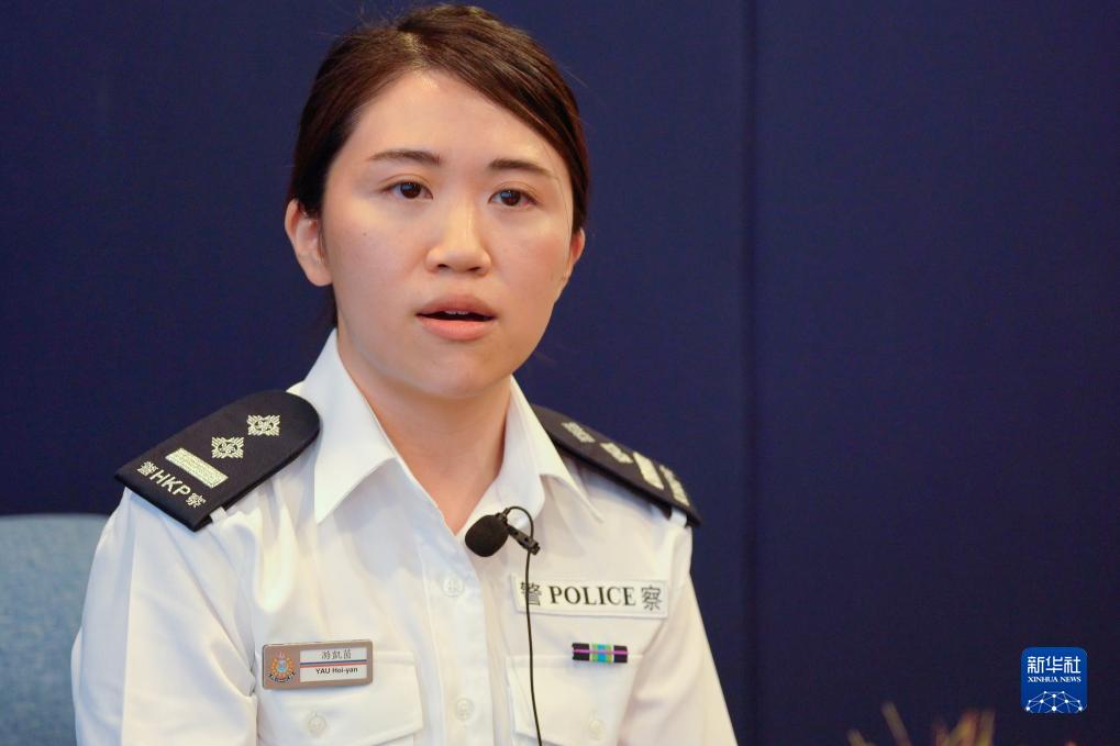 香港警務(wù)處支援科高級督察游凱茵接受采訪(fǎng)(4月19日攝)。新華社記者 龍鏡伊 攝
