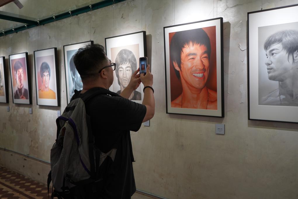 幾十年來(lái),李小龍的功夫電影啟發(fā)了眾多創(chuàng )作者,并通過(guò)電影、漫畫(huà)、動(dòng)漫等各種再創(chuàng )作影響著(zhù)更多人。正在深水埗舉辦的一場(chǎng)李小龍紀念畫(huà)展中,同樣身為“龍迷”的香港插畫(huà)師馬富強以“一龍千面”為主題,用手繪的方式細致描繪出李小龍的豐富表情。