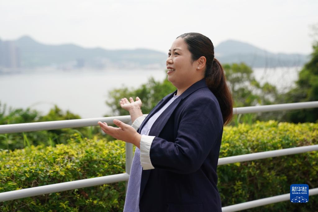 香港海防博物館一級助理館長(cháng)梁明穎向新華社記者介紹香港海防博物館獨特的地理位置(8月10日攝)。 新華社記者 王申 攝