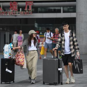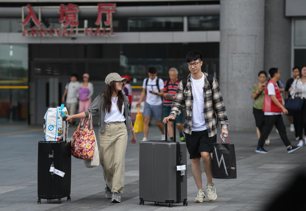 10月6日,旅客從深圳灣口岸入境。新華社記者 毛思倩 攝