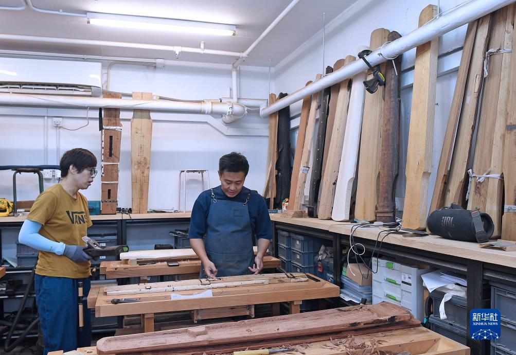 每到周末,位于九龍西部石硤尾的一間約10平方米古琴工作室便熱鬧了起來(lái),銼刀及各種工具的聲音此起彼伏,斲琴匠人不時(shí)停下來(lái)用手把握琴的弧度,而一旁墻上等待張弦的古琴漆面潔凈無(wú)瑕,讓這個(gè)充滿(mǎn)古韻的空間顯得很是明亮。