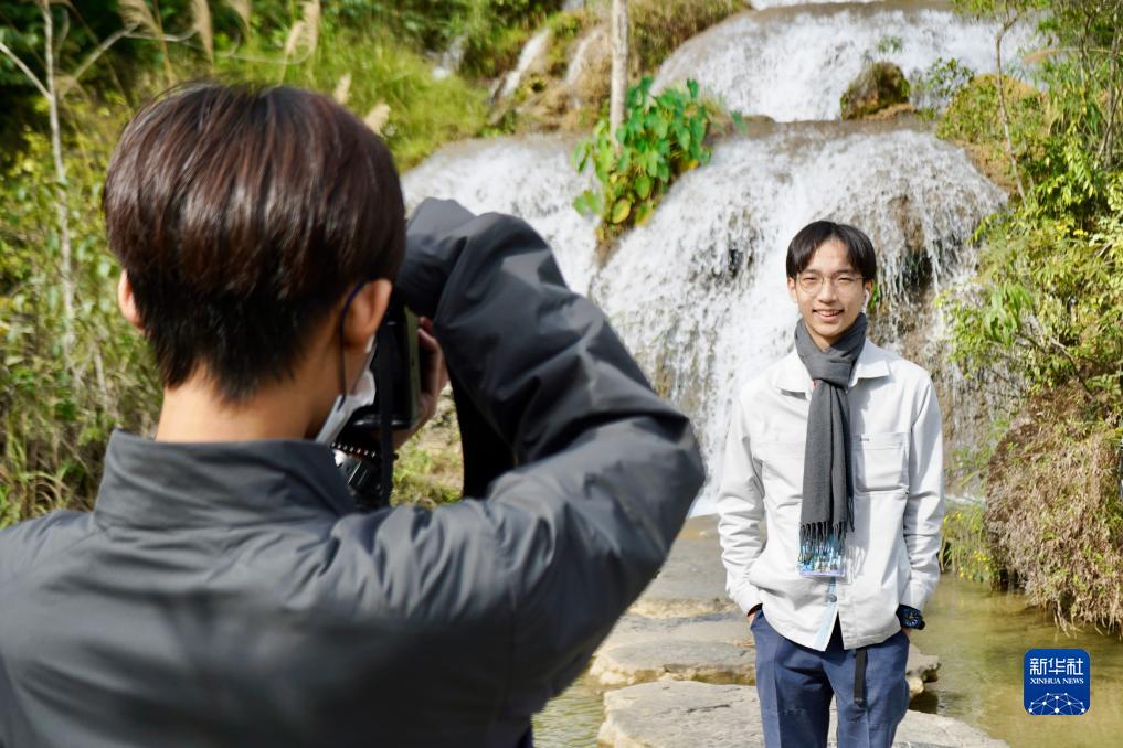 手持相機,香港學(xué)生何彥羲不停地拍下沿途美麗的風(fēng)光。透過(guò)鏡頭,獨特的拍攝視角、用心的攝影構圖無(wú)不透露著(zhù)他對貴州自然山水的喜愛(ài)。
