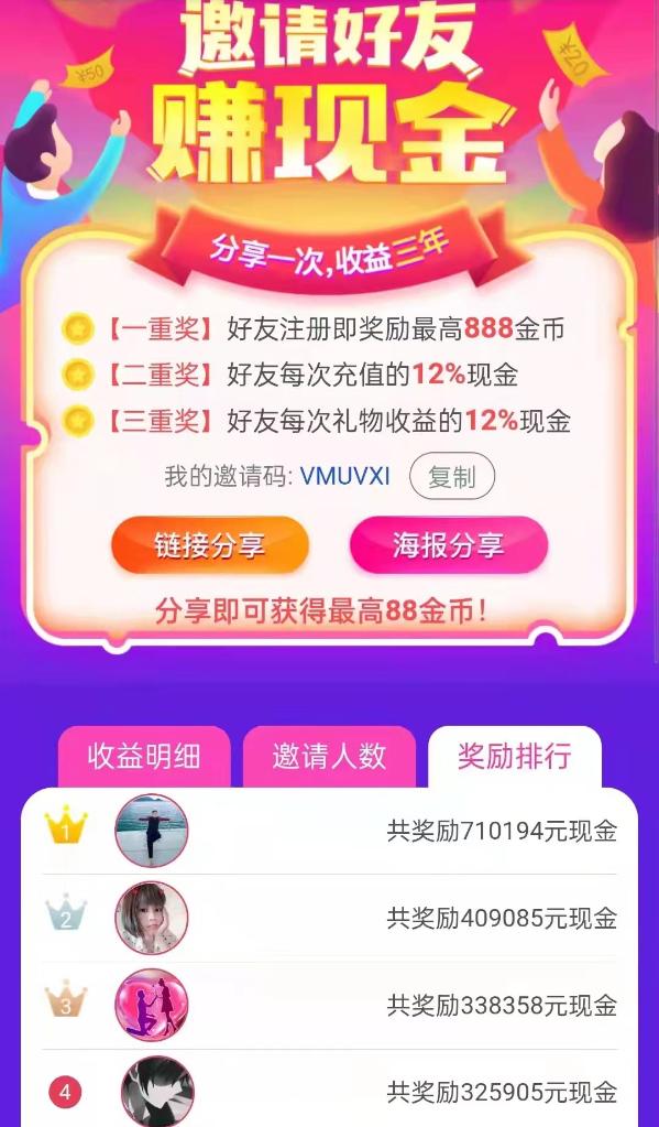 記者發(fā)現,不少平臺通過(guò)宣傳“高額返現”“月入過(guò)萬(wàn)”,吸引用戶(hù)“拉人頭”。根據相關(guān)App的獎勵機制,若邀請的好友每次進(jìn)行充值提現,便可獲得其充值提現額度的8%到12%作為獎勵,并表示“上不封頂”。