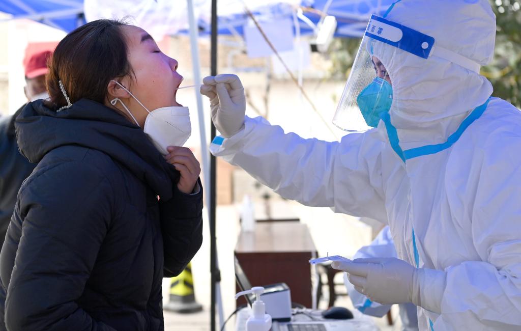 1月7日,西唐寨村的村醫在給重點(diǎn)人群進(jìn)行核酸檢測。新華社記者劉瀟攝