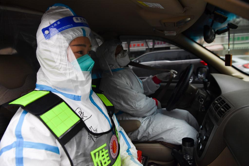 1月7日,西安市雁塔區退役軍人志愿突擊隊隊員位娜娜(左)準備出發(fā)轉運核酸檢測樣本。新華社記者 張博文 攝