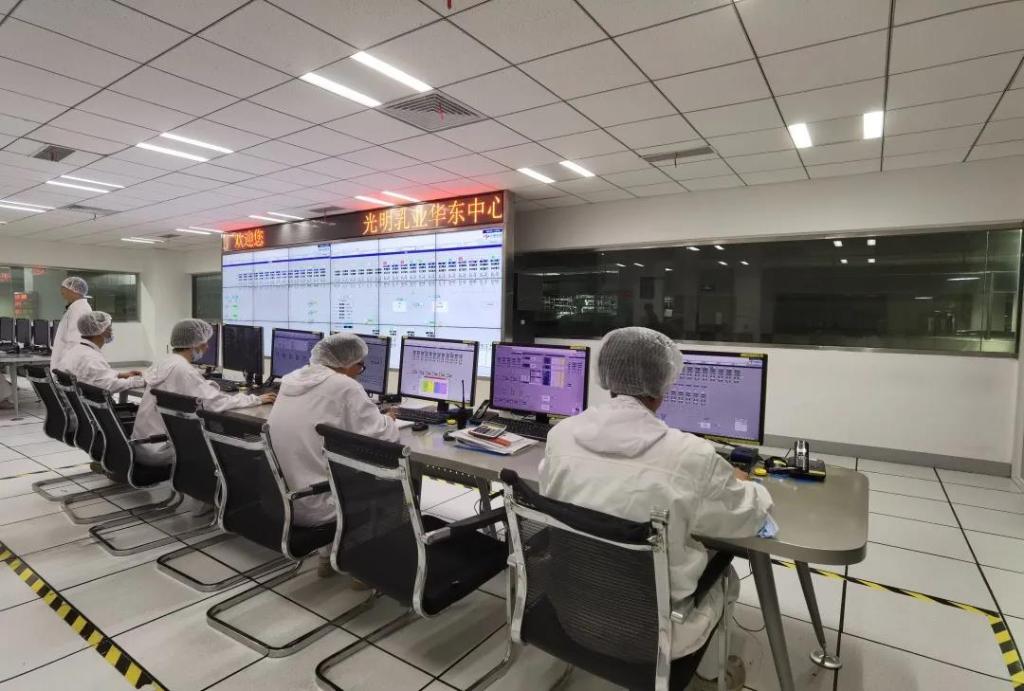 光明乳業(yè)華東中心工廠(chǎng)內,通過(guò)“智慧大腦中央控制室”,數字化操作人員僅通過(guò)中央控制室就能對牛奶“了如指掌”。(受訪(fǎng)者供圖)
