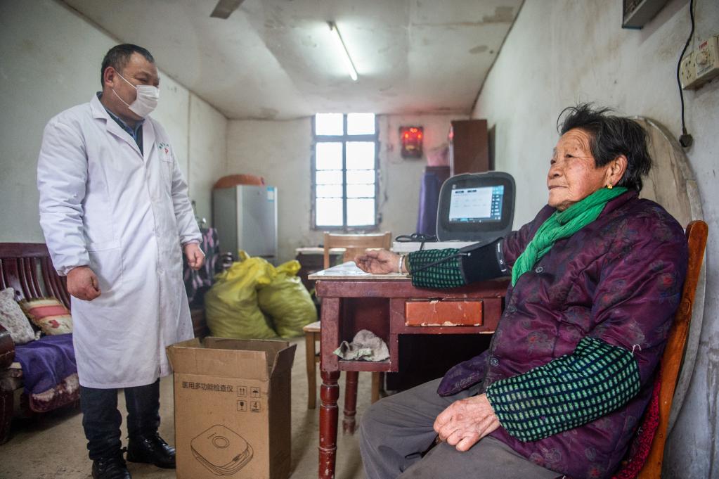 丁玉強上門(mén)給村民量血壓。新華社記者伍志尊 攝