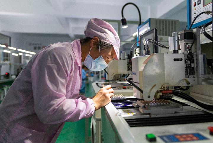 朱穩華在會(huì )澤縣縣城易地搬遷安置區奮精電子廠(chǎng)工作。(新華社記者 陳欣波 3月3日攝)
