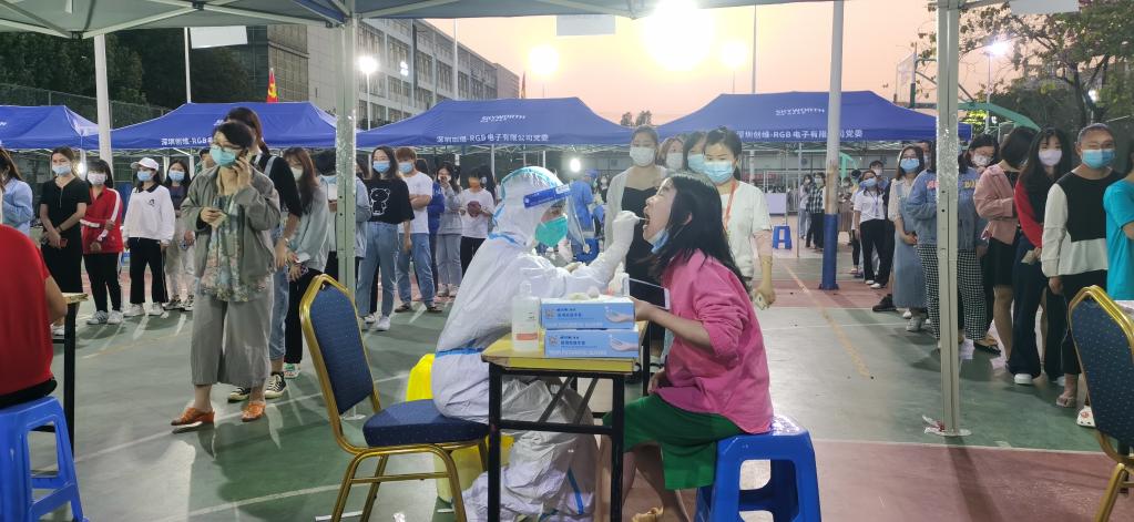 工人們在有序做核酸檢測。(創(chuàng )維-RGB供圖)