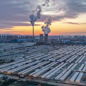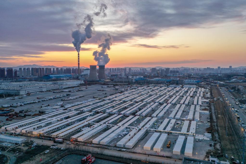 這是3月20日傍晚拍攝的吉林市高新南區隔離方艙建設現場(chǎng)(無(wú)人機照片)。新華社記者 張楠 攝
