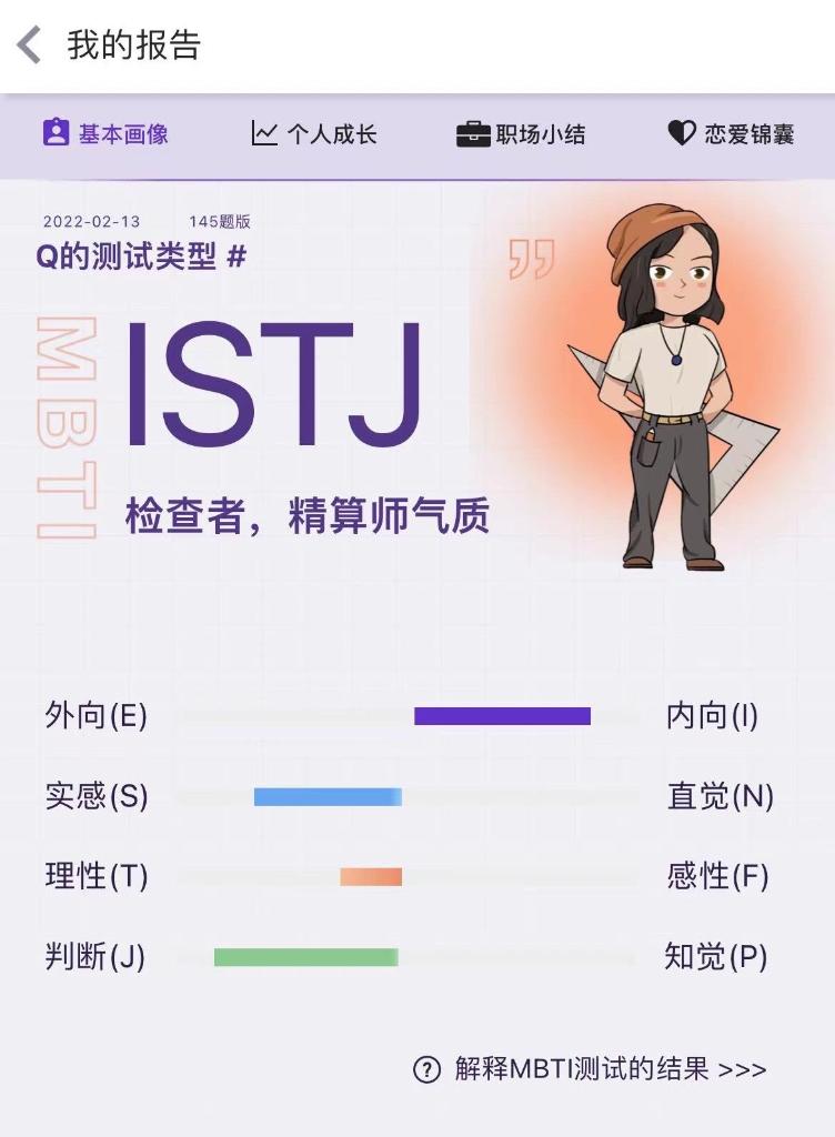 有網(wǎng)友說(shuō):“一直以為不愛(ài)社交的自己是異類(lèi),但這個(gè)測試讓我知道了自己是ISTJ,還發(fā)現有這么多和我一樣的人,讓我接受了本來(lái)的自己?!?/p>