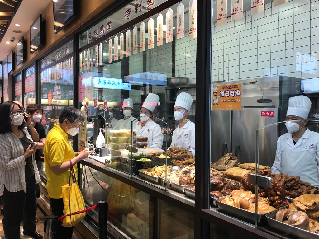 “現制現售的熟食是我們的一大招牌,伴隨熟食檔的開(kāi)啟,我們復商復市的腳步更快了?!毙卵攀称凡惋嬁偙O蔡夢(mèng)蕓說(shuō),看到店外的消費者有序排隊進(jìn)入,自己頗為感慨,“我們期待的消費回來(lái)了”。