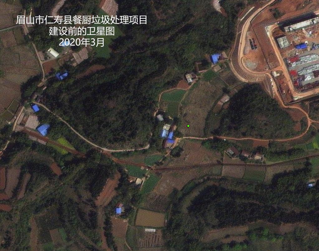眉山市在仁壽縣建設餐廚垃圾無(wú)害化處置項目,著(zhù)力打造餐廚垃圾收集、轉運、處置體系。上圖為該項目建設前的衛星圖,下圖為項目建設完成后的衛星圖。