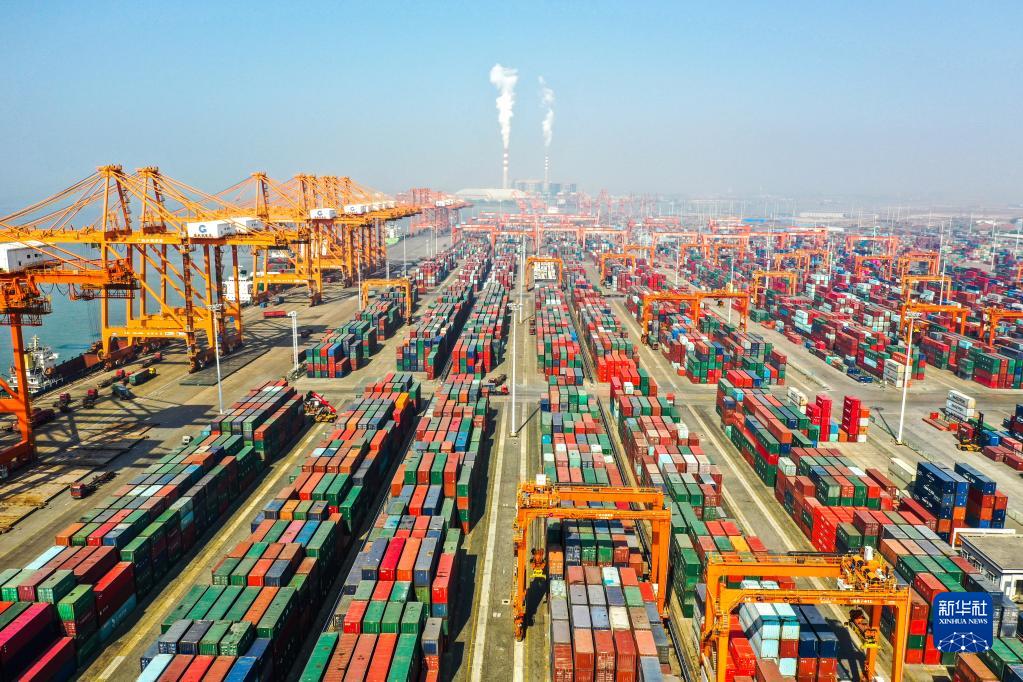 這是廣西欽州港集裝箱碼頭(2021年1月14日攝,無(wú)人機照片)。新華社記者 曹祎銘 攝