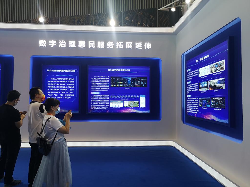 在19日舉行的“晉陽(yáng)湖·數字經(jīng)濟發(fā)展峰會(huì )”上,游客在觀(guān)看數字經(jīng)濟展覽。(新華社記者王飛航 攝)