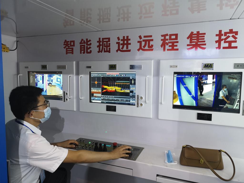 在19日舉行的“晉陽(yáng)湖·數字經(jīng)濟發(fā)展峰會(huì )”上,工作人員在展示煤礦智能化采煤場(chǎng)景。(新華社記者王飛航 攝)